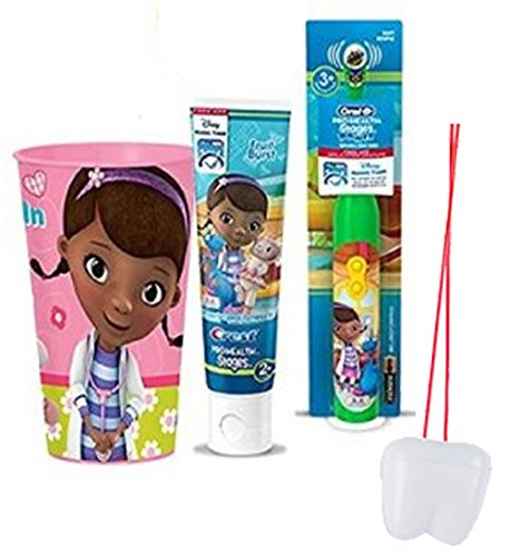 -. Binding : Health and Beauty -. EAN : 6391839469910 -. Feature : (1) Doc McStuffins Power Kids Toothbrush! Rotating PowerHead reaches, surrounds, and thoroughly cleans multiple surfaces. Raised center-row bristles help clean chewing surfaces where cavities tend to form. Ergonomic handle is designed for children's small hands. / (1) Mcstuffins Kids' Toothpaste, 4.2 oz helps make dental hygiene more fun for children. This product provides essential protection from cavities in a kid-tested, mild gel formula. This tube of Oral-B Stages toothpaste features animated characters that kids recognize and love. They'll be excited to brush their teeth and spend more time doing so with the help of their celebrity pals. / (1) Doc McStuffins 16oz Plastic Mouth Wash Rinse Cup! / Plus Bonus "Remember to Brush" Visual Aid / Hang it in their bathroom or by their bed so they remember to keep their chompers sparkly fresh. You could also use these tooth charms to save one of your child's baby teeth -. IsAdultProduct : 0 -. Label : Crest -. Manufacturer : Crest -. ProductGroup : Health and Beauty -. ProductTypeName : HEALTH_PERSONAL_CARE -. Publisher : Crest -. Studio : Crest -. Title : Doc McStuffins Inspired 3pc Bright Smile Oral Hygiene Set! (1) Doc Turbo Powered Toothbrush, Fruit Burst Toothpaste & Mouthwash Rinse Cup! Plus Bonus "Remember to Brush" Visual Aid …