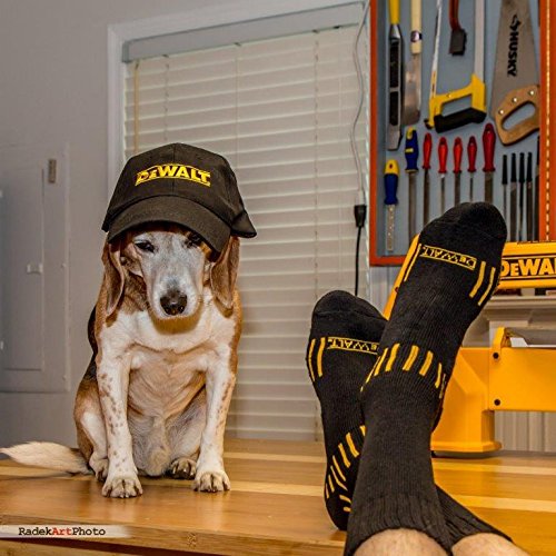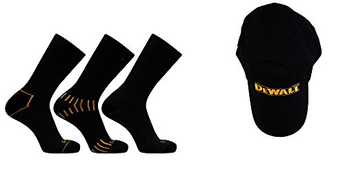 -. Brand : DEWALT -. Color : Balck -. Department : mens -. EAN : 0028877596662 -. Feature : Match your tools to your socks / Smooth toe seam for extra comfort ,Double welt cuff / Reciprocated heel and toe for better fit / Extra Full cushion throughout foot and leg delivers added comfort heavyweight construction for extra comfort / Extra heavyweight construction for extra comfort -. ProductGroup : Apparel -. ProductTypeName : APPAREL -. Size : 10-13 -. Title : DeWALT 3 Pair Everyday Cotton Blend Work Crew Socks and BALL CAP Set -. UPC : 028877596662