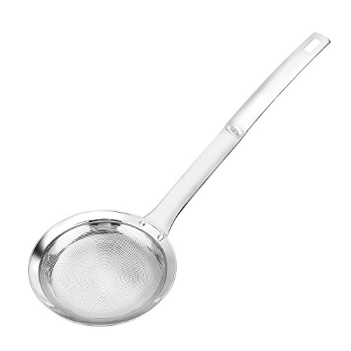 ?Made from 304 high grade durable stainless steel with ergonomic handle,Durable and no rust, no breakage, no wear after multiple uses and washings. ?Fast,easy and complete separation of the floating fat from broths, soups and stews,it makes the clearest broth. ?Filter mesh is fine enough to pick up the smallest fat partides,remove thousands of calories from your food in seconds. ?Multi-functional:Filter soy milk and food scum.remove grease and foam from hot pot ?EASY TO CLEAN : Dishwasher safe; Hand Wash : simply wash with warm water and soap to reuse.