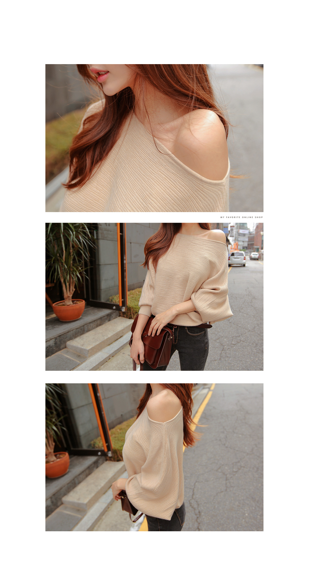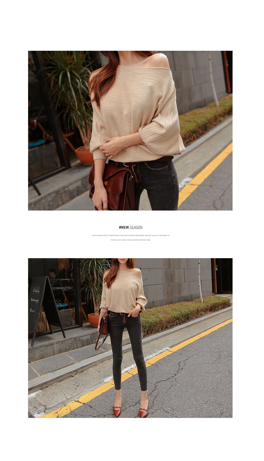 입술넥 디자인으로 어깨라인을 한층 더 예쁘게 해준답니다.