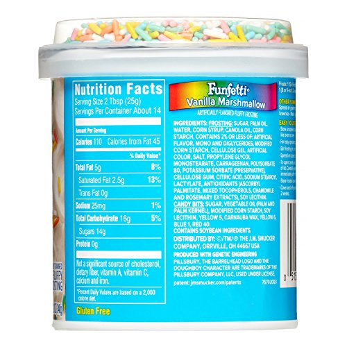 Funfetti premium cake & cupcake mix with candy bits makes 24 cupcakes. As always, pudding in the mix. Funfetti Vanilla Marshmallow frosting with sprinkles, 12 ounces.