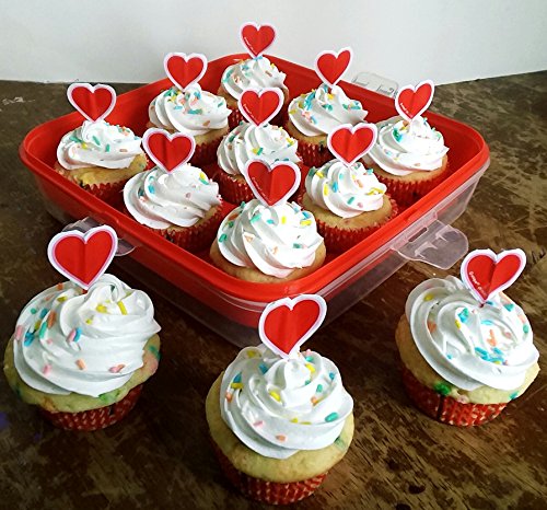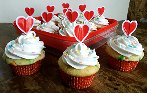 Unique cupcake kit includes 24 - 2 inch red liners with white hearts and 24 - 2.5 inch red heart picks