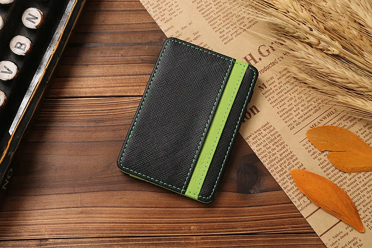女性男性財布カードホルダーミニ中立挽くマジック無地二つに折り畳める人工革財布財布カジュアルポケットcarteira