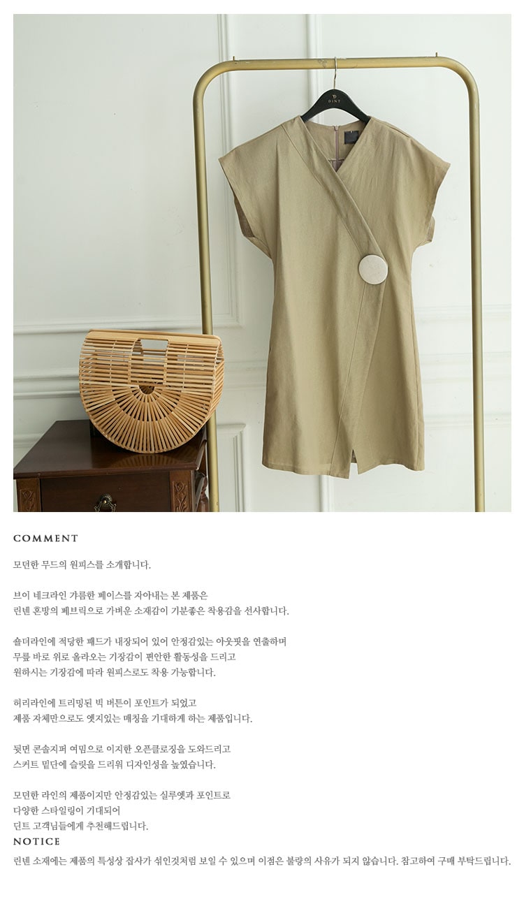 D3583 모던라인 린넨 빅버튼 원피스 Beige