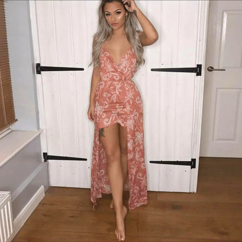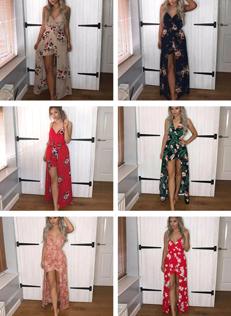 Feature:Floral print chiffon jumpsuit women