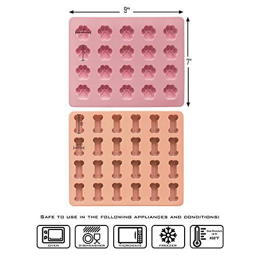 (Le Dogue)/Kitchen Dining/Tableware/DIRECT FROM USA/Mini Dog Paw and Bone Silicone Baking Tray Molds with Healthy Recipe Booklet, For Puppy Treats,...