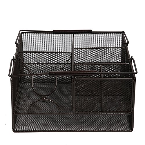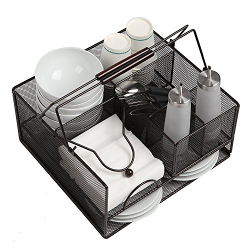 Finnhomy Steel mesh Picnic Caddy, Metal Tabletop Organizer for Silverwares, Napkins, Condiments, plates, cups and more, for Camper, Barbecue party, Entertaining , Brown
