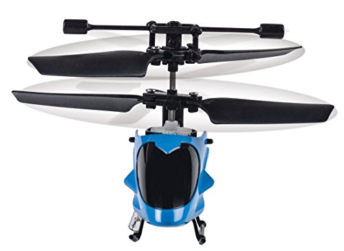 - Feature : One Mini Helicopter - All in One - Assorted Colors (red, blue, or yellow) - No Choice Available / Package includes: helicopter with rechargeable lithium battery, IR Remote control - Requires 4 AA (not included), storage case, charger / 2 Programmable Channels; 30 Foot Range; 4-Direction navigation / Helicopter: 3.5in x 2in; Remote: 4in x 3 .5in x 1.5in / For ages 8 years and older