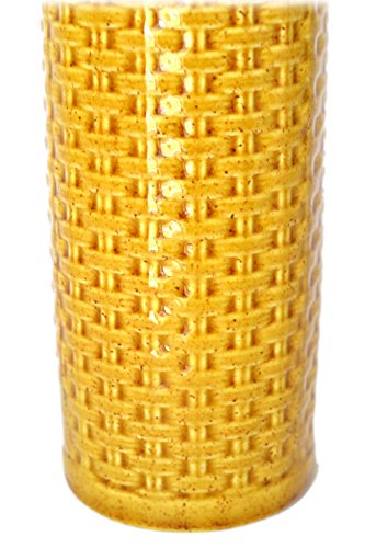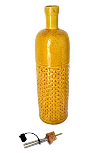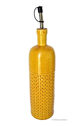 -. Feature : Large Oil Bottle or Cruet / Yellow Ceramic Basket Weave Provence Design / 25 oz / 750 ml Capacity / Stainless Steel Spout with Plastic Cover / Approximate Dimensions: 11.5" W x 3" H
