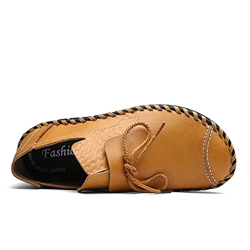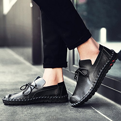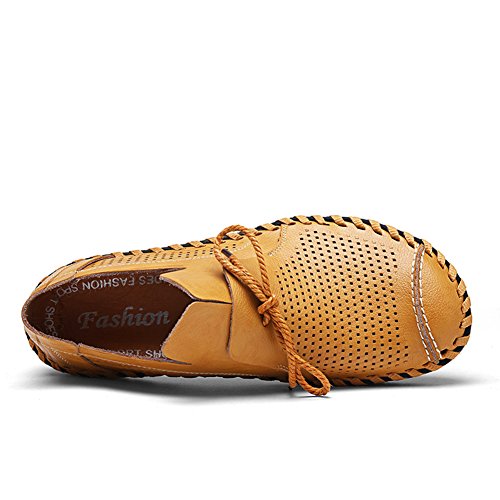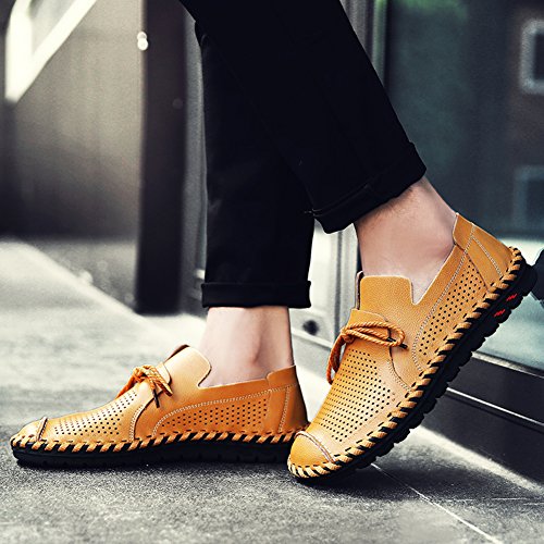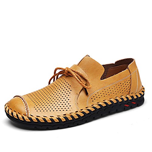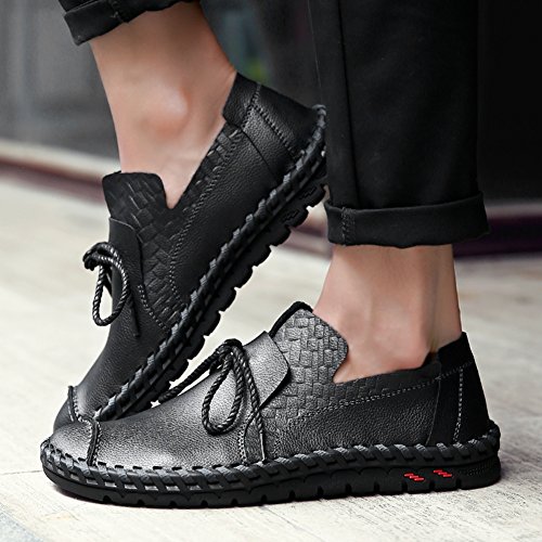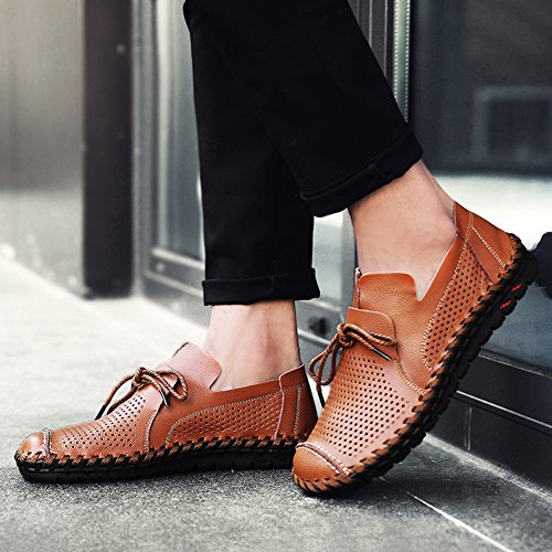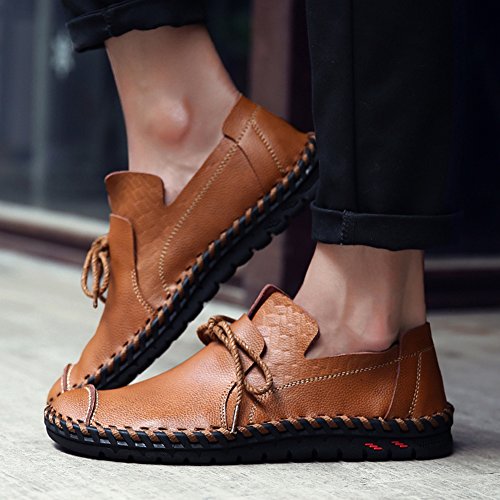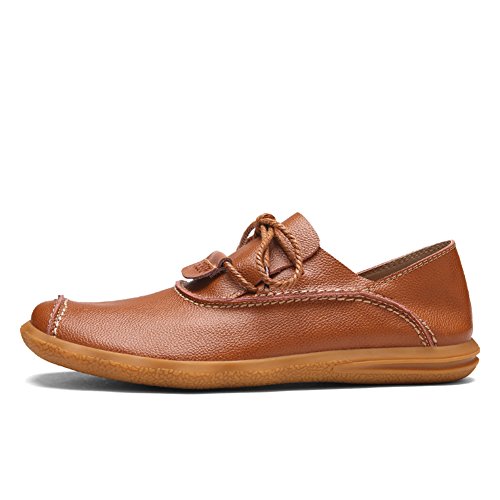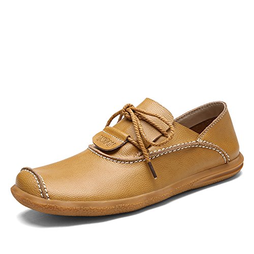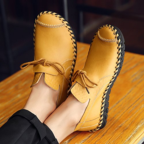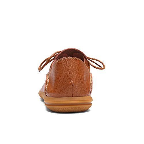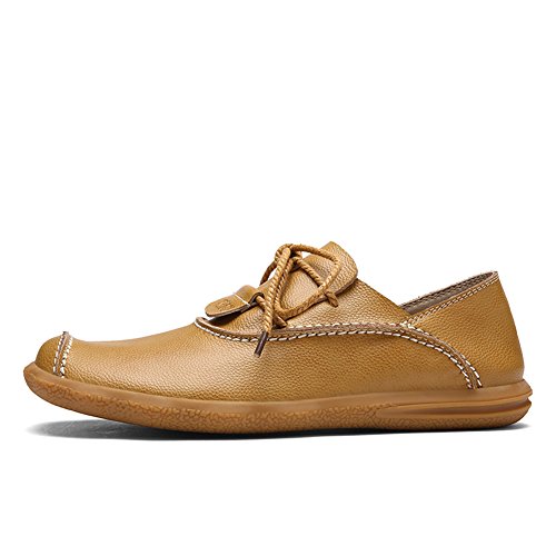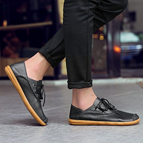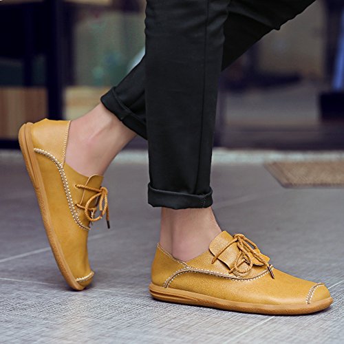 | (fereshte)/Men's/Loafers Slip-Ons/DIRECT FROM USA/Men's Casual Cowhide Leather Soft Flat Shoes Handwork Cap-Toe Lace-up Low-Cut Loafers |