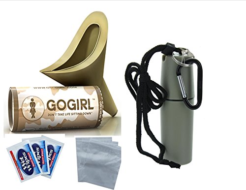 Go Girl Military Female Urination Device, Khaki With Khaki Waterproof Holder & with Xtra towlettes, Baggies & Carabiner