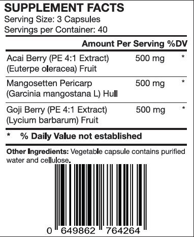 Acai Berry, Mangosteen and Goji Berry are the three original super fruits recognized by health professionals world wide for their amazing health benefits.• Acai Berry -Is packed full of antioxidants, amino acids and essential fatty acids in exactly the right combination for easy assimilation and use within the body.: