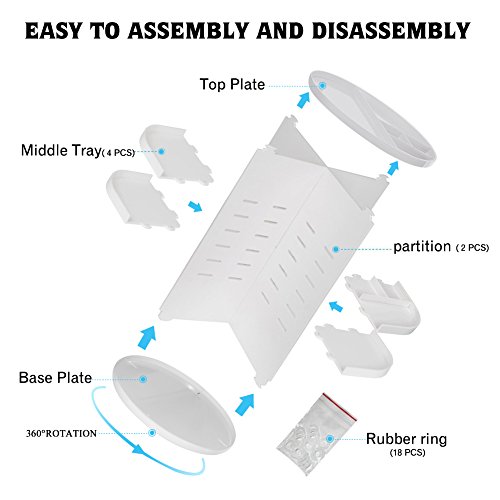 - ADJUSTABLE TRAYS: Allow you to adjust tray height according to the height of your products; Fit all different types of products and accessories.There's also small rubber rings to secure the tray and each part. It's worth every penny of it, you can DIY the makeup holder;