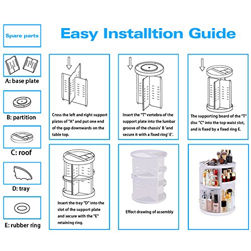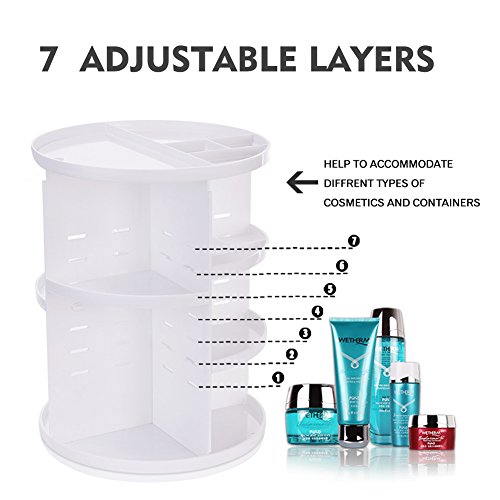 - 360 ROTATION ORGANIZER:Perfectly organizes and stores your cosmetics; Enables easy access to all of your makeup and products;
