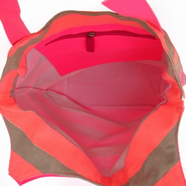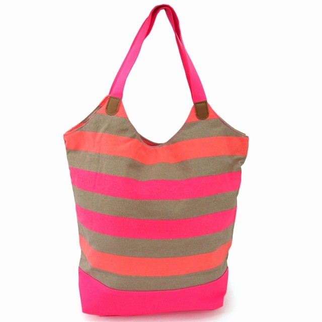 キャンバス地×蛍光カラーのボーダーが珍しい!ヴィクトリアシークレットの大きめトートバッグが入荷しました。蛍光カラーとヴィクシーのロゴプレートが良いアクセントに♪たっぷり収納できる大きさなので、様々なシーンでお使いいただけるアイテムです。