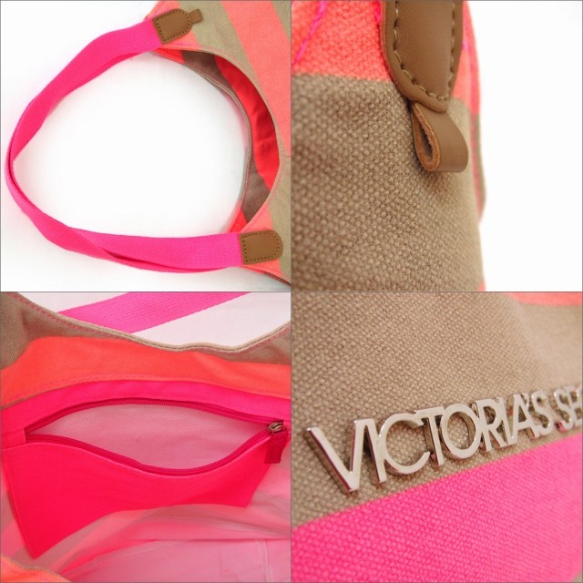 ヴィクトリアシークレット バッグ VICTORIA'S SECRET ビクトリア トートバッグ ハンドバッグ ハンドバッグ ピンク ボーダー キャンバス