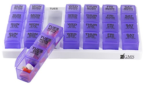 GMS 4x/Day Weekly Pill Organizer with Transparent Purple Removable Daily...