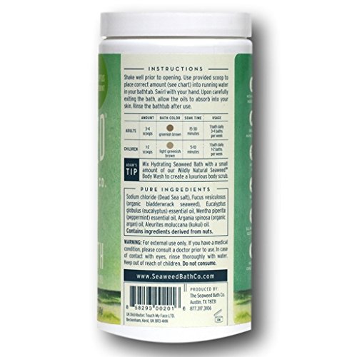 Our Hydrating Seaweed Baths help to detoxify, hydrate and replenish with a combination of nutrient-rich seaweed and important oils, vitamins and amino acids. Our organic bladderwrack seaweed with 65+ vitamins and minerals is sustainably-harvested off the coast of Maine. • Best for those who want to restore and soothe skin with the powerful nutrients of the ocean. • Sea salt’s variety of essential minerals help to restore and calm skin. • Argan oil, rich in vitamin E and essential fatty acids, naturally comforts dry, troubled skin. • Hawaiian Kukui oil, rich in oleic, linoleic and linolenic acids, is a natural, nourishing moisturizer. • 16.8 oz. recyclable canister includes scoop and directions for use. • Gluten Free and Paraben Free. Vegan and Cruelty Free. Leaping Bunny Certified.