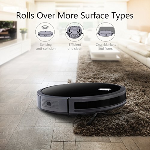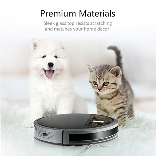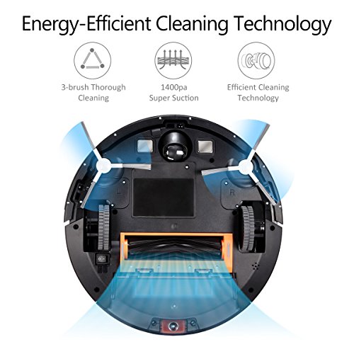 Strong suction: new generation pethair robotic vacuum cleaner, built-in efficient brushless motor, 1400 pa max suction, can pick up particles, dirt and pets hair on hard floors and carpets, provide thorough and concentrated cleaning.
