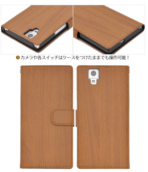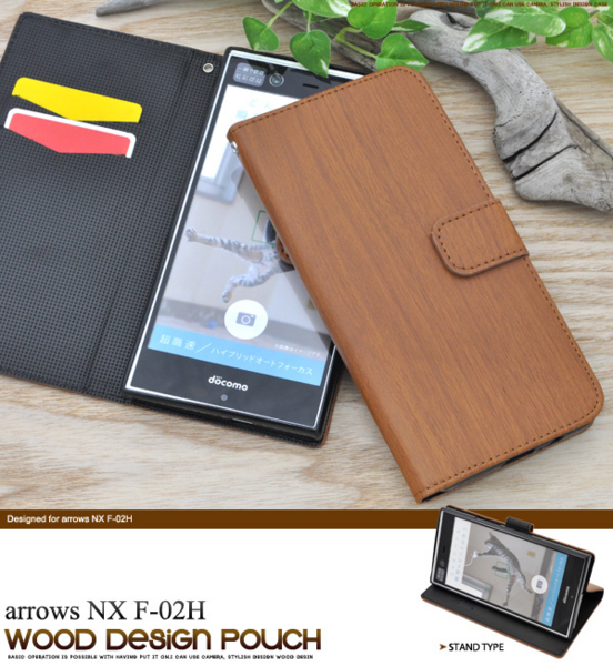 木目調のarrows NX F-02H用スタンドケースポーチ。