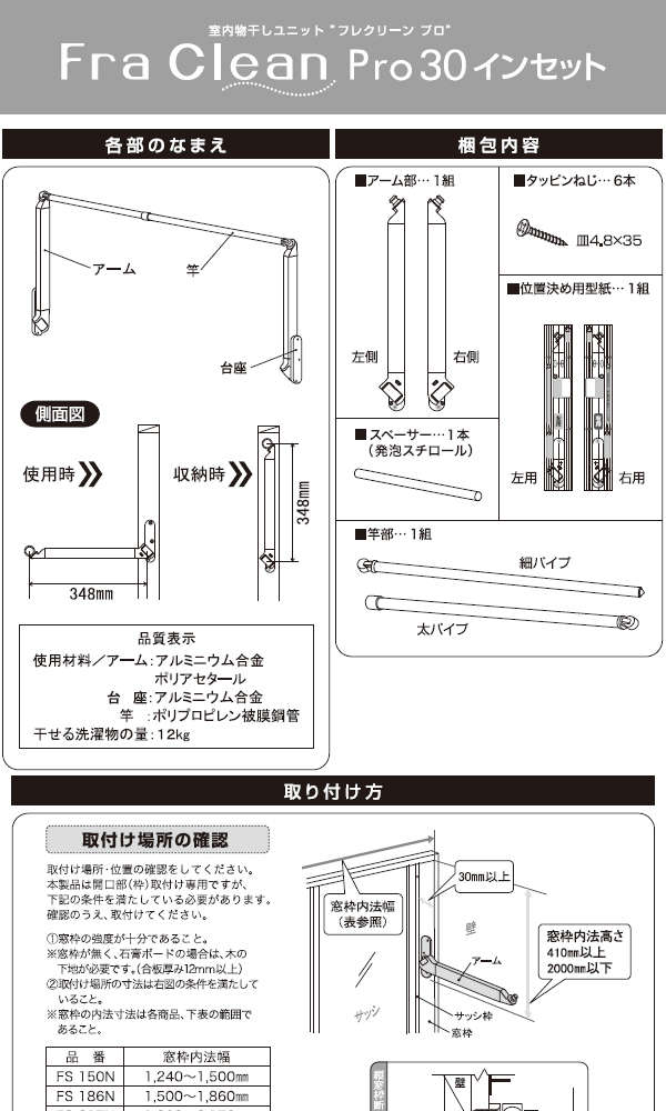 ●内側に入りながら昇降する特殊構造!使用しない時は、窓枠の内側に収納できアームはカーテンに隠れ場所を取らずに見た目もスッキリ。
