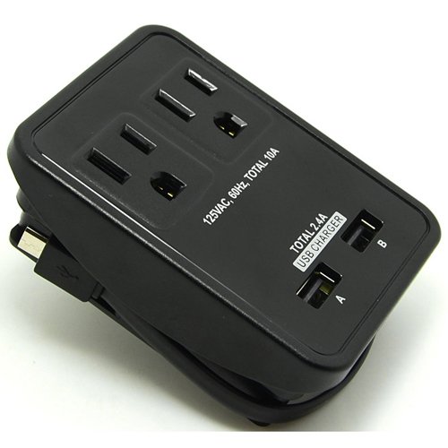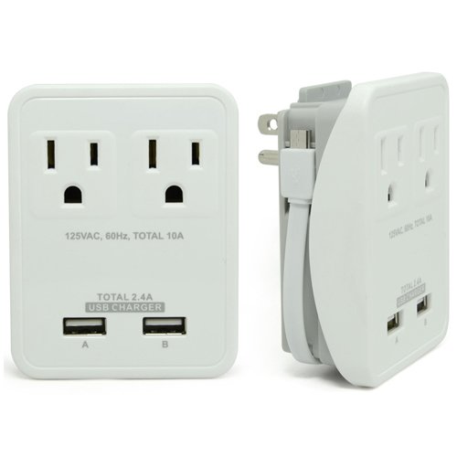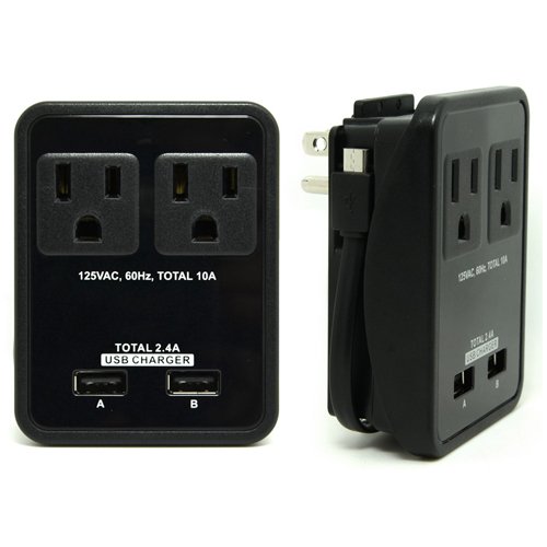 OUTLETS and USB PORTS - 2 outlets and USB 2-ports capable of charging 2 USB-powered devices at the same time, with a total of 2.4 amps you can quickly charge iPads and tablets