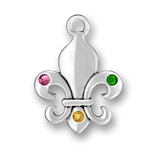-. Title : Sterling Silver Womens 1mm Box Chain French Heritage Fleur De Lis Pendant Necklace Mardi Gras Crystals