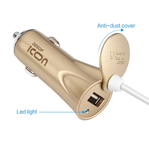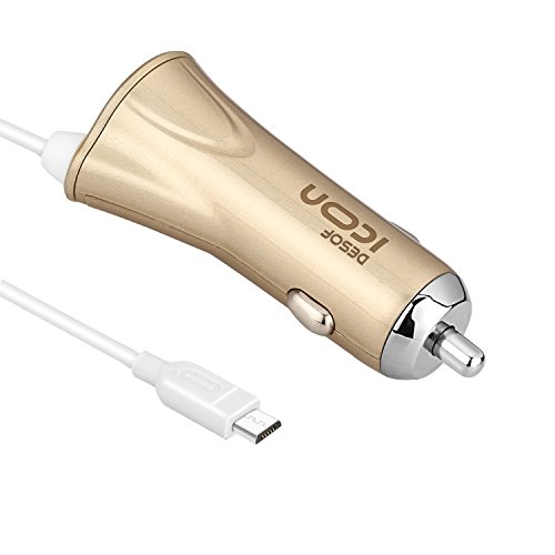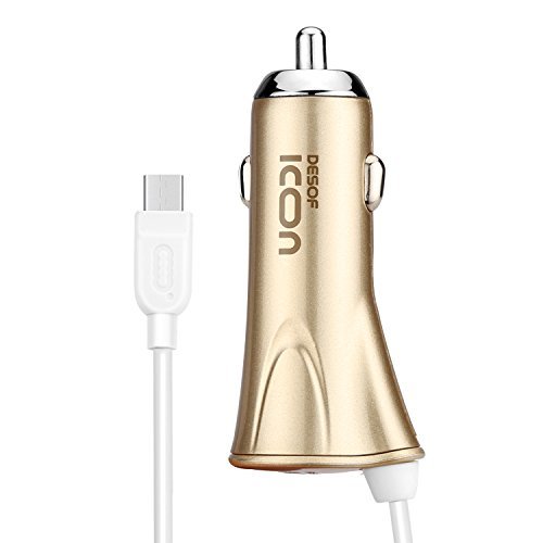 Fast Car Charger,Dual USB Auto Charger with 4 Foot Micro USB Charging Cable+2.1 A USB Output for iPhone,iPad,Samsung and More (Gold)