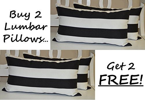Studio : Resort Spa Home Decor Publisher : Resort Spa Home Decor Product Description Set of 2 - 11"x 19" Indoor / Outdoor Decorative Rectangle / Lumbar Throw Pillows 2 FREE Indoor / Outdoor Black and White Stripe Fabric - Pillows are filled with soft, premium, hypo-allergenic poly-fiberfill - New - Made with weather and wear resistant fabric. Water Resistant, Fade Resistant, Soil Resistant. Listing is 2 (two) rectangle / lumbar pillows 2 (TWO) FREE PILLOWS Buy 2 Get 2 Free! (Total Quantity 4) Indoor/Outdoor Pillows can be used as outdoor decor, outdoor back cushion/pillow, rocking chair pillow/cushion, Adirondack pillow, swing pillow - Also great for indoor home decor! Made of 100% Spun Poly UV-treated fabric for fade resistance Soil resistant, mildew resistant Easy care: sponge wash with soap and water, air dry; fast drying Factory Direct Best quality, best value, best selection...anywhere.....guaranteed. Wonderfully made in the USA.........Just Relax........ 0