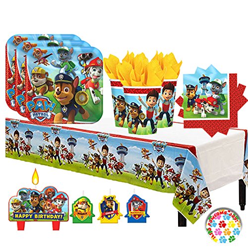 Paw Patrol Birthday Party Pack for 16 with Plates, Napkins, Cups, Tablecover, and Candles