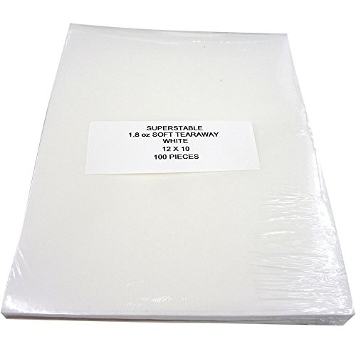 Tear Away Stabilizer White 1.8 oz, 100 Precut Sheets 12" x 10". SuperStable Embroidery Stabilizer