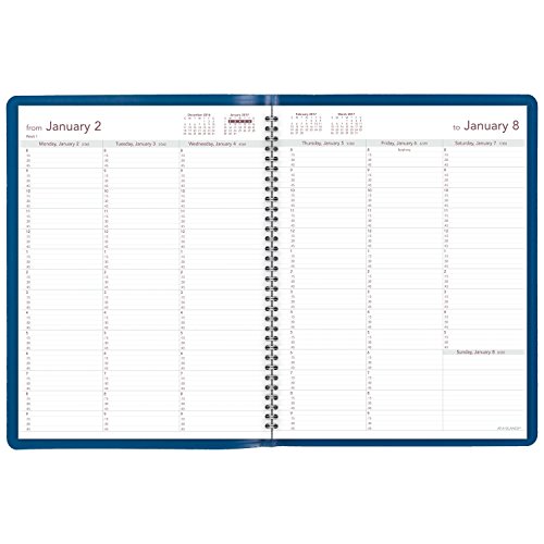 -. Feature : Blue fashion color will show off your personal style. Weekly, 12 month appointment book / planner runs January - December so you can plan your year a week at a time. Julian dates. / One week per two page spread lists quarter-hourly appointment times for precise scheduling. Monday - Wednesday on the left page and Thursday - Sunday on the right page. / Weekday appointment times in 15 minute intervals from 8:00 a.m. - 9:45 p.m. for full day scheduling. Weekends allow greater flexibility with Saturday appointment times from 8:00 a.m. - 5:45 p.m. and ruled, but untimed Sundays.