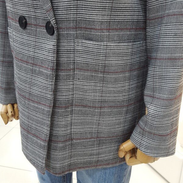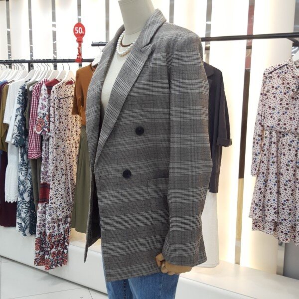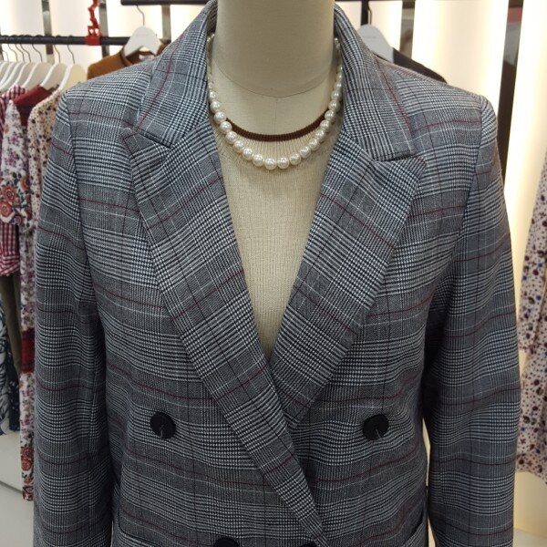 더블단추 포인트로 단정한 느낌을 드리며 체크패턴으로 멋스럽게 코디 연출 하실수있습니다.가을 느낌 듬뿍담은 컬러감으로 봄,가을에 착용하시기 좋은 제품입니다.
