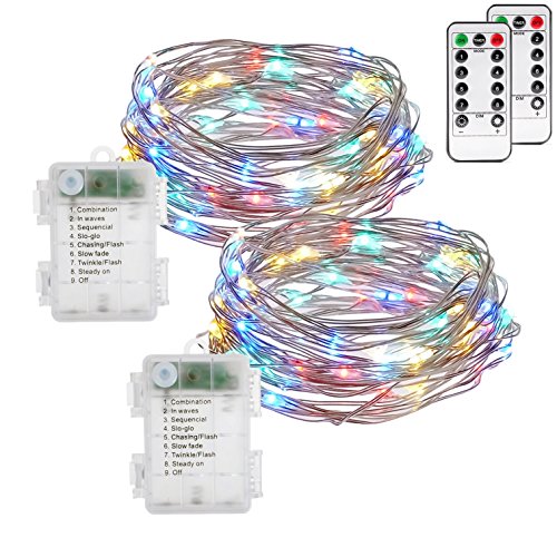 FYHD 2-Pack Battery Operated Waterproof Multi-Colored 50 LED Fairy String Lights,16.4ft Copper Wire Light with Remote Control for Christmas Party Weeding Garden Home Decoration