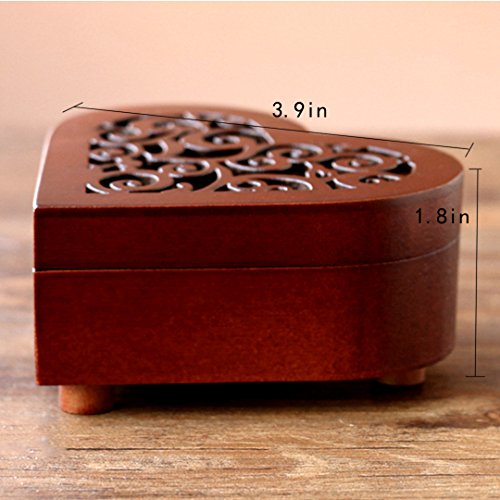 Heart-shaped Wooden Music Box Clockwork Music Box for Birthday Graduate Present Tune Is Castle in the Sky