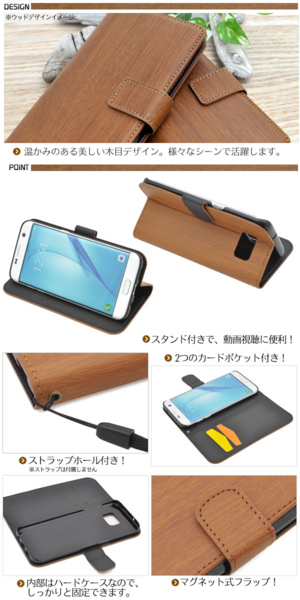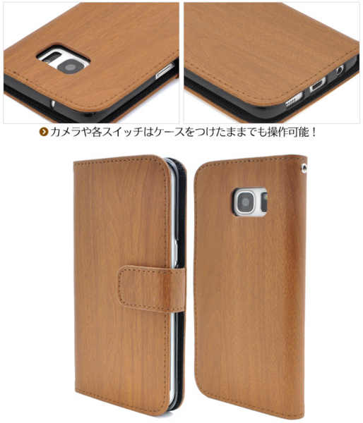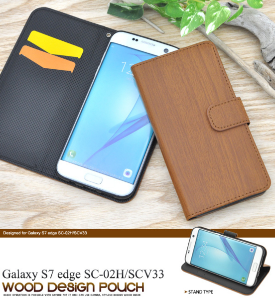 木目調のGalaxy S7 edge SC-02H/SCV33用スタンドケースポーチ。