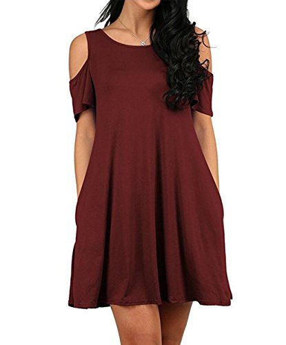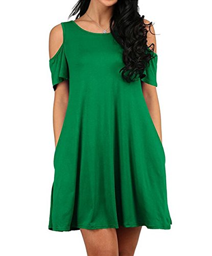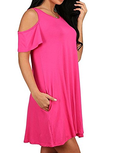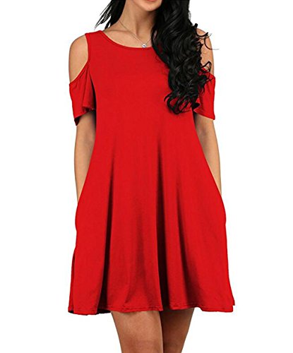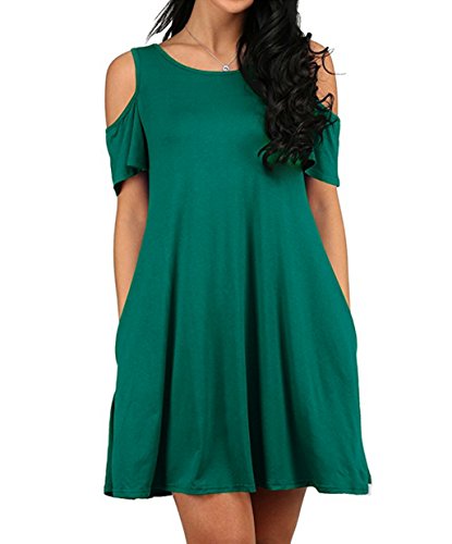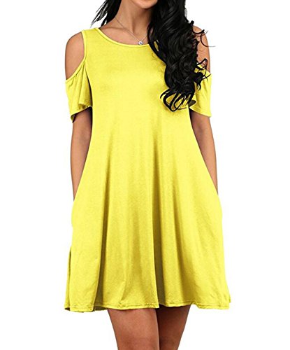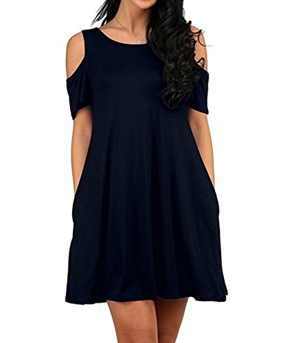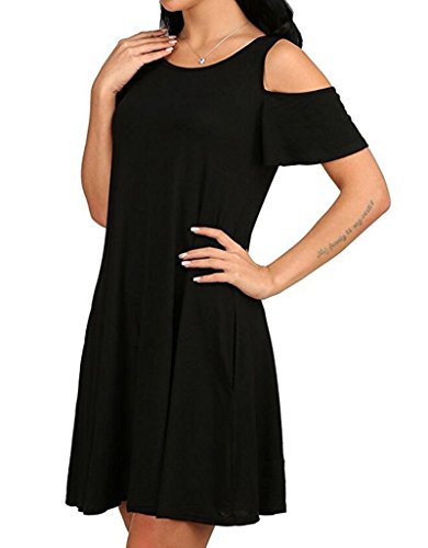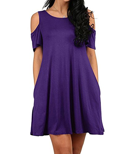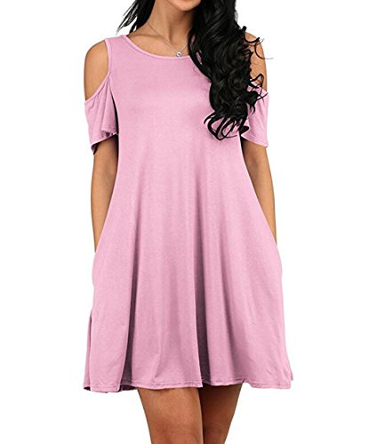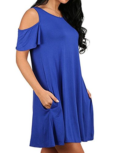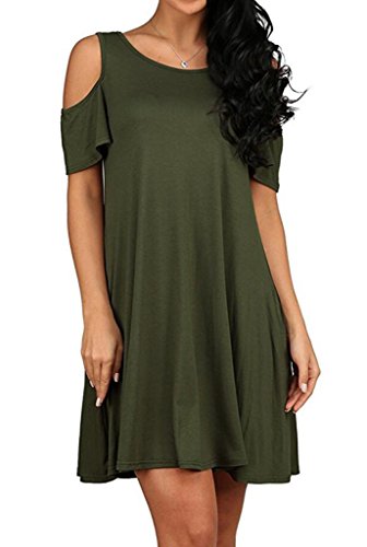Round neck, Short Sleeve, tank top dress,Loose fit, tunic top dress, long T shirt, swing dress, casual wear,Cold Shoulder Ruffle Sleeve A-Line Dress