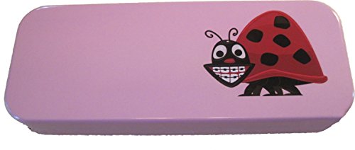 Pink, Tin, Eco-friendly, Mini Pencil Box, with Ladybug Character. Use As Pencil, Jewelry, Gift, Make-up, Candy, or Birthday Gift Box