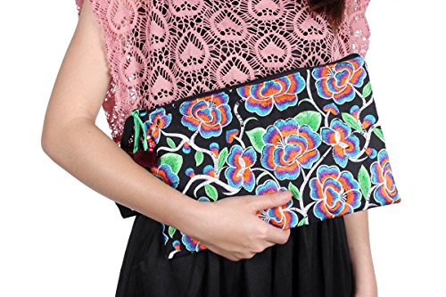 -. Feature : Fairtrade / Embroidered Magnolia Fabric with with cotton wristlet / Perfect for keeping your essential items looking great / Zipper Closure and Inside Zippered pocket / Wristlet attached made of qualtiy black cotton