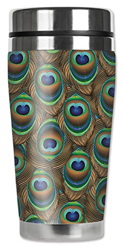 Mugzie 1208-MAX "Peacock Feathers" Stainless Steel Travel Mug with Insulated Wetsuit Cover, 20 oz, Black