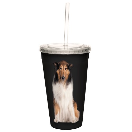 Tree-Free Greetings CC35037 I Heart Collies Artful Traveler Double-Walled Cool Cup with Reusable Straw, 16-Ounce
