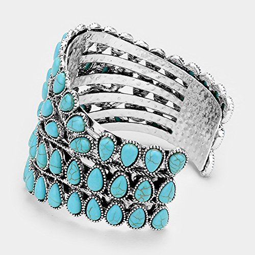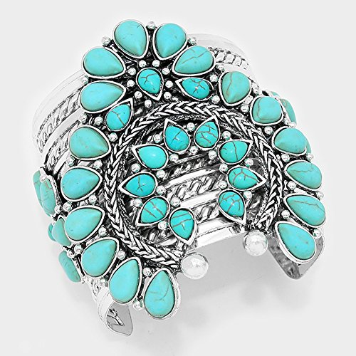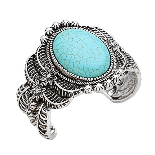 -. Feature : Bundle: Bracelet & storage pouch. Great accessory for everyday wear. / Gorgeous faux turquoise accented silver-tone cuff bracelets. Chunky open slip on style. Perfect gift for all occasions. / Beautiful antiqued look / Comes with protective ARIS storage bag