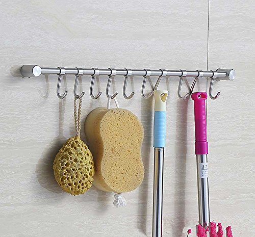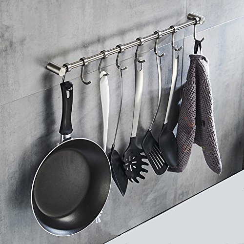 Wall Mounted Stainless Steel Pan Pot Rack,Kitchen Utensils Organizer,Durable Solid Bar,23 inch, 8 hooks