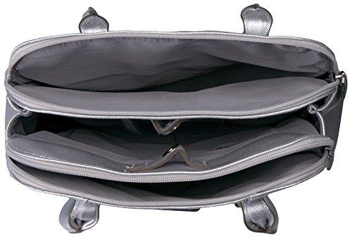 Double handle tote with 3 compartments, 1 interior zip and 2 interior slip pockets to keep you organized