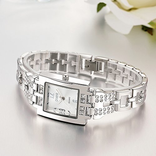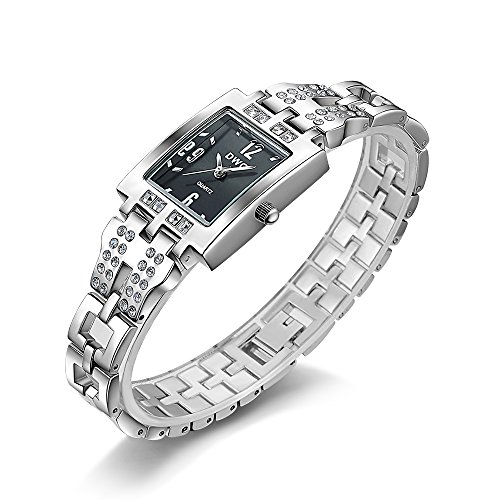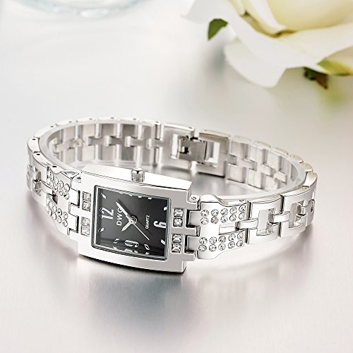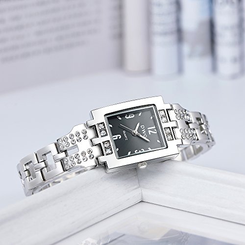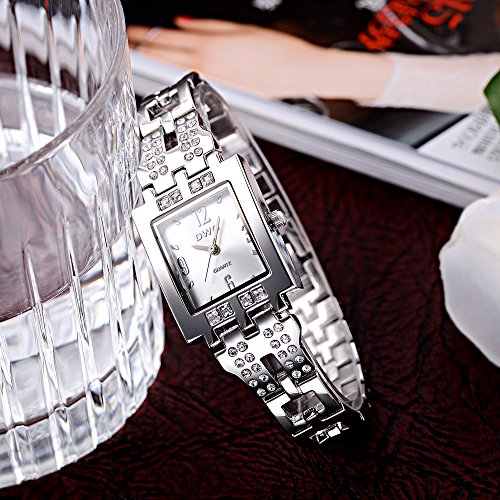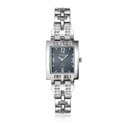 -. Feature : スクエアフレームがエレガント、女性らしいデザインで一目惚れ / 12.3.6.9の高級感のあるハッキリ見える文字 / ラインストーンが付いていてキラリと光るので、アクセサリに代わりのワンポイントに / あまり派手でもなく、プライベート用だけでなく仕事用にも使える / ケース:25*30mm 厚さ:約8mm ベルト幅:約12mm 重量:約51.2g