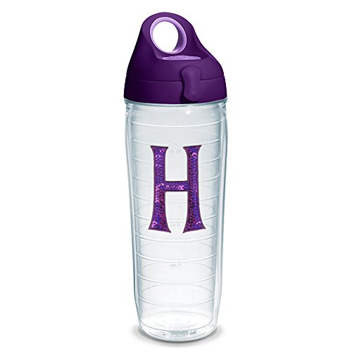 Tervis Initial Purple Sequins H Emblem Water Bottle with Royal Purple Wb Lid, 24oz, Clear