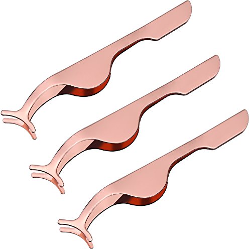 Hotop 3 Pack Eyelashes Clip Stainless Steel False Eyelashes Extension Applicator Tool Fish Tail Clip Tweezers Nipper Tool (Rose Gold)