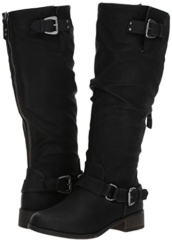 Product DescriptionThe maire boots from xoxo have a clean riding silhouette with sweater material on the back that will add an extended calf option.0