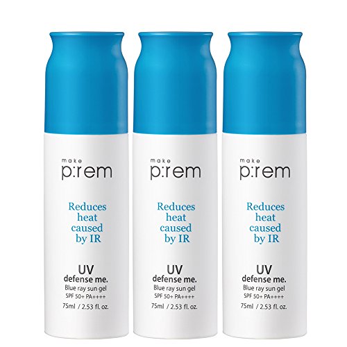 Make P:rem's Blue Ray line counteracts the damage cause by hot Infrared waves and radiation by cooling down the skin surface by multiple degrees while still providing superior UVA and UVB protection. The milky and watery texture of the sun gel lets you say goodbye to greasy, pore-clogging sunscreens and white casts by drying clear for all skin tones. It's formulated with hydrating Chia seed extracts, calming Centella extract, and brightening Niacinamide in addition to SPF 50+ PA++++ to protect from sun damage. This mattifying sun gel works perfectly under makeup and can be used as a perfecting primer. Ideal for all skin types, especially combo and oily skin.