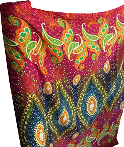 RaanPahMuang Light Viscose Rayon Fabric Gaia Paisley Butterflies 42in x 3yd Bolt, Burgundy